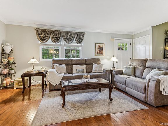 Welcome to Whispering Pines at Huntington Commons! This beautifully maintained 2-level townhouse features 3 spacious bedrooms and 2.5 bathrooms in a thoughtfully designed layout. Upon entry, you’re greeted by a bright living room adorned with crown molding, an electric fireplace and gleaming hardwood floors, flowing seamlessly into the dining area with a chandelier and an eat-in kitchen equipped with stainless steel appliances, abundant cabinetry, and a breakfast bar. A conveniently located powder room is just off the kitchen. All bedrooms are situated on the second level, including a stunning primary suite with a marble tile shower and nickel finishes. The finished basement expands your living space with a dedicated entertainment area, washer and dryer, and a separate storage room. Enjoy outdoor relaxation on the stone patio and the convenience of a one-car garage with pull-down access to a partial attic for additional storage. Community amenities include a pool, tennis courts, clubhouse, basketball court, and a playground. Offering resort-style living right at home!