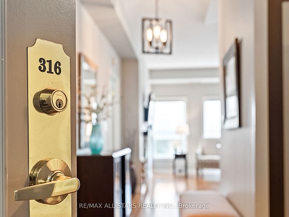 Welcome to Bridgewater Condominiums! This beautifully maintained 3rd-floor corner unit offers 1,131 sq. ft. (per MPAC) of stylish, comfortable living with 9' ceilings, two bedrooms, and two full baths. Enjoy the convenience of two deeded underground storage lockers and a premium, wide parking space with walls on each side. Condo fees of $767.95 include water (including hot water) and common elements.Step inside the Unit to a spacious foyer featuring a stylish sliding door for pantry storage and a front hall closet. The warm, inviting kitchen boasts granite countertops, a black subway tile backsplash, and stainless steel appliances (Dishwasher 2022). The bright eat-in dining area and cozy reading nook are filled with natural light from large windows and a patio slider leading to your private balcony. The open living area features an electric fireplace, perfect for relaxing or entertaining.The large primary suite easily accommodates a king-sized bed and includes two closets, with organizers, and a 4-piece ensuite with a walk-in shower and tub. The second bedroom offers a generous closet, while the updated second full bath (2021) includes a Bath Fitter walk-in shower and in-suite laundry with washer and dryer (2021). Custom roller shades (2020) and abundant storage throughout complete this move-in-ready condo. Bridgewater residents enjoy a lively community with social gatherings and amenities including a grand lobby, secure entrance, party/recreation room with kitchen, car wash and workshop areas, garbage chute on each floor, visitor parking, and a gazebo with BBQ. A rare find offering comfort, community, and convenience-all in one exceptional package! See Features attached to Listing! Rare 2 Storage Units deeded with unit.