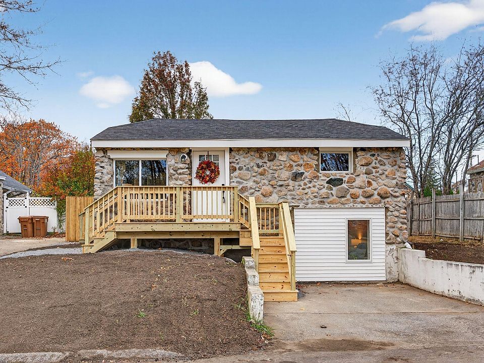 Large partially fenced yardGranite countertopsPrivate en-suite bathEnduring curb appealDistinctive fieldstone exteriorDurable lvp flooringWalk-in closet