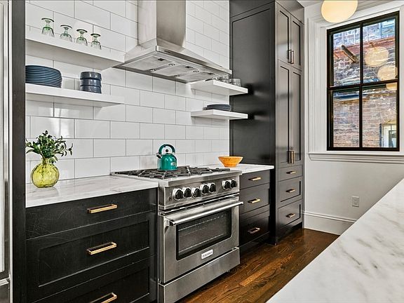Exceptionally Renovated Single-Family Townhouse that exudes comfort and warmth. The home features 4 bedrooms, 3 full bathrooms, 2 half bathrooms and beautiful hardwood floors thru-out the home. The open entry level features a lovely living room with completely restored soundproof staircase, custom built-in bookcases, fireplace and 2 large windows that bring in natural Sunlight. The state-of-the-art kitchen has been completely renovated with top-of-the-line appliances, marble countertops, custom walnut color cabinets and access to a courtyard patio. The 2nd floor hosts a TV room with fireplace, built in bookcases, excellent size bedroom with walk-in closet. 3rd floor hosts 2 generous size bedrooms, great closet space and lovely outdoor patio. Spacious Top floor primary suite with lavish bath with dual vanity, soaking tub and shower. The finished basement is ideal for playroom, home office or storage. Close to waterfront, Whole Foods, MGH, public T and many fine restaurants