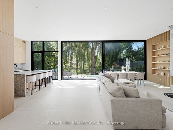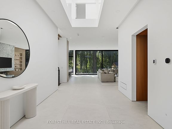 Prestige, Privacy & Perfection on Khedive Avenue. This brand-new, custom-built SMART estate is a true architectural triumph where opulence, innovation, and elegance converge. Set on one of the areas largest pie-shaped ravine lots, this 5000sq ft. Living space residence is unlike anything else on the market. No expense has been spared in its creation, with every finish and feature curated for those who demand the absolute finest. The main level impresses with soaring 11-ft ceilings, luminous skylights, wide-plank European white oak eng. floors, and a seamless indoor-outdoor flow through a massive motorized sliding glass door. A chefs kitchen showcases Calacatta Super White marble, Wolf & Sub-Zero appliances, and bespoke millwork. The family room exudes warmth with a stone fireplace, custom wall paneling, designer bar, and wine storage.The primary suite redefines indulgence with a skylit walk-in closet, motorized drapery, and a spa-inspired ensuite featuring smart privacy glass, heated bathroom floor, a soaking tub, and a rain head shower. Secondary bedrooms offer expansive windows, ensuite bath, and custom closets. A floating oak staircase with LED under-lighting anchors the homes striking design.The lower level extends luxury with radiant heated floors, recreation space, and laminated security glass. Full home automation includes Lutron lighting, Sonos audio, Ecobee climate control, surveillance, and Bocci designer outlets. Outdoors, experience resort-like living with a saltwater infinity pool, NBA regulation lines semi-court, heated driveway, garage & stairs, and a breathtaking ravine backdrop crowned by a one-of-a-kind majestic willow tree. 22 Khedive Avenue is more than a home it is an irreplaceable statement of artistry, innovation, and lifestyle.