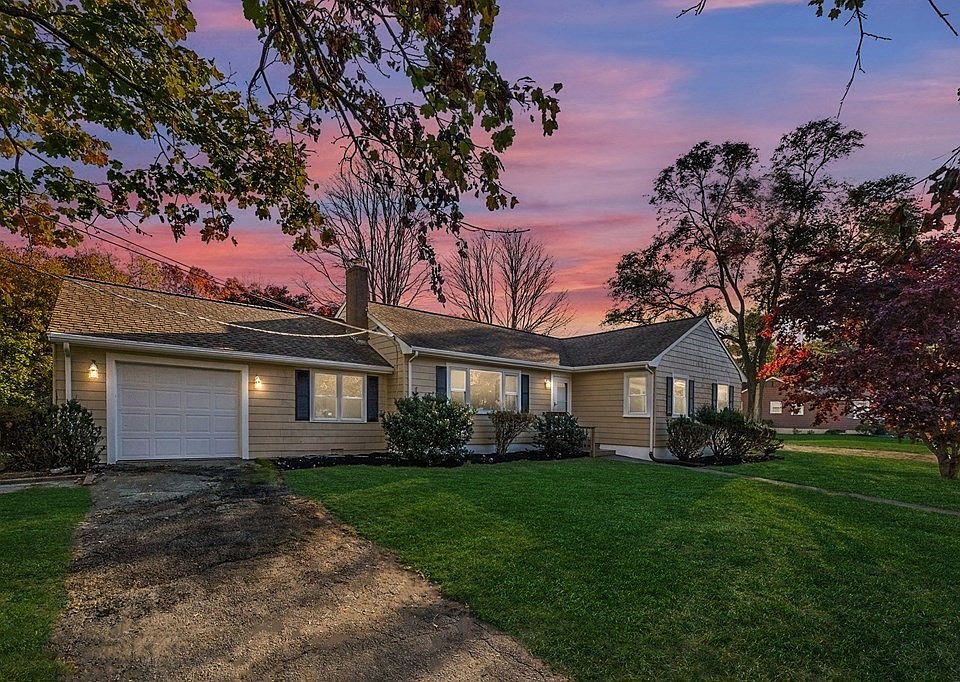 ENDLESS POSSIBILITIES. Renovated 3 bedroom 1.5 bathroom ranch with huge finished basement. Opportunity to live in this desirable Sharon neighborhood. Gleaming hardwood throughout the main level. Contemporary fresh paint and recessed lighting. Phenomenal living room area with breathtaking fireplace mantle. Flowing effortlessly to dining room and kitchen. New stainless steel appliances, granite countertops and gorgeous tile flooring. Good sized bedrooms including large primary bedroom with updated half bath. Spacious layout. Bonus room, between dining area and attached garage, is the perfect setting for a home office with beautiful, scenic views of the expansive nearly 3/4 acre lot. Serene patio space with outdoor brick fireplace. So much to offer, unbelievable finished basement with modern laminate and lighting. Ultra cool bar for entertaining. Ideal space for home theater or game room. Located on a quiet road, yet minutes away from shopping & highway.