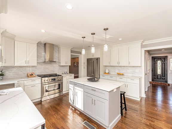Fabulous fully renovated 4-BR/2.1 bath Colonial on quiet leafy street in West Orange's desirable Saint Cloud section, near NYC transport, parks, Turtleback Zoo & more, Updates inc new doors & 2-paned windows w interior blinds, new 2-zone heating/cooling, upgraded electrical/plumbing, new recessed LED lights & new/refurbished HW flrs, 1st fl: foyer w 2 closets; LR w bay window; formal DR & open EIK w sliders to deck/large private yard w updated heated in-ground pool. EIK w SS appls, quartz counters, pendant lights. FR w gas FP; laundry rm, PR, & access to 2-car att grg. 2nd fl: 4 big BRs all w walk-in closets; master w 2 sinks, marble counters, walk-in shower, cath ceiling, skylight; hall bath w skylight; 2 linen closets & laundry chute. Huge fin basement w wine cellar! Near NYC express bus/jitney to train.