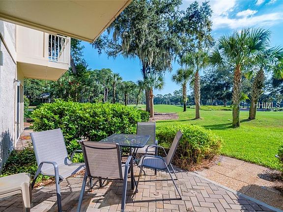 Don't like elevators or stairs? This is a rare ground floor unit. Imagine sitting in your back patio watching the approach to the 8th green and then golfers tee off the 9th hole at Atlantic Dunes! This townhouse building has permanent friendly neighbors and is right across from the pool and ideally situated near Fraser Circle, meaning the beach and Harbour Town are only steps away! Easy Lowcountry living right here! Great opportunity for primary home, favorite vacation place, a rental machine, or a combination of all three!