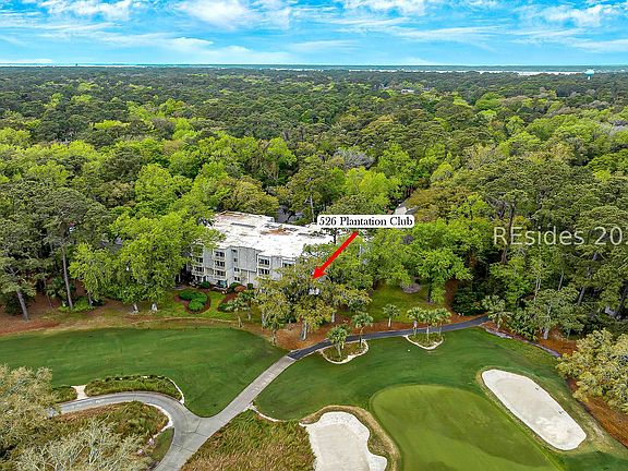 This special third-floor unit offers some of the most impressive golf views in Sea Pines-overlooking the #9 tee box and down the fairway, with additional views of #8 and #7 of the Atlantic Dunes course and a lagoon in the distance. Hardwood flooring runs throughout the villa, complemented by a new kitchen with granite countertops, soft close cabinetry, stainless appliances, window treatments, a 2022 roof, and 2018 HVAC. A separate laundry room behind the kitchen provides shelving, cabinetry, and a 2024 GE washer/dryer. The owner suite includes hardwood flooring, two closets, a private bath, and stunning golf views.The complex has recently undergone significant improvements, including exterior painting, a resurfaced parking lot, and new sidewalks. This villa a short walk to the community pool and minutes from the Sea Pines Beach Club. 526 Plantation Club offers outstanding rental potential. Its central location provides effortless access to golf, beach, Harbour Town, bike paths, and all Sea Pines amenities, making it an excellent choice for a beach getaway or investment property.