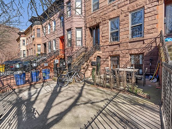 As you step inside, you'll be greeted by soaring ceilings, a spectacular entryway, wood carved staircase, intricate moldings, oversized pocket doors and original hardwood floors that have been refinished to their former glory. The gigantic living room and dining room are adorned with original fireplace mantles adding warmth and character to the place. This duplex apartment offers the space over 2,500 square feet indoors including 4 bedrooms, a ballroom/living room, dining room, separate kitchen, 2 full bathrooms and a huge finished basement with another half bath. This unit has a great outdoor space as well including a charming terrace that sits outside the kitchen, with a private backyard below and a private entrance that includes your own quintessential New York stoop.