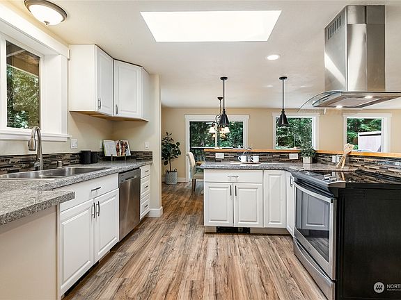 Outdoor enthusiasts rejoice! Nestled w/in Gate 3 & surrounded by trees, this 4 bed 2.5 bath home welcomes you w/its spacious open concept. Picturesque windows and skylights allow the home to be drenched w/natural light. 3 beds on the main including primary w/ensuite. Designed w/entertainment in mind. Kitchen, living & dining room flow seamlessly to your wrap around deck, overlooking your low maintenance yard & Little Strawberry Park. Downstairs (remodeled 2024) provides a multi-generational living option w/a second primary suite, living area and separate entrance. New roof (2019) provides peace of mind. Amenities include trails, parks, private beaches, 18 hole golf course, marina and seasonal pool. This home is your tranquil setting.