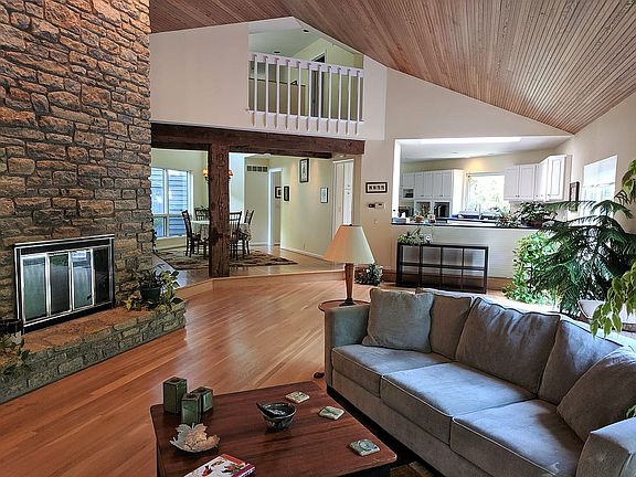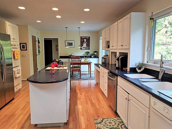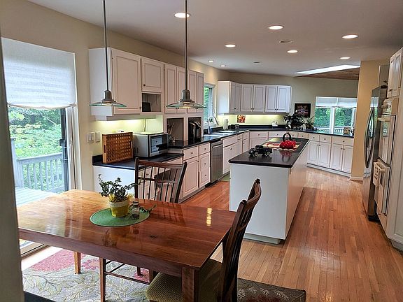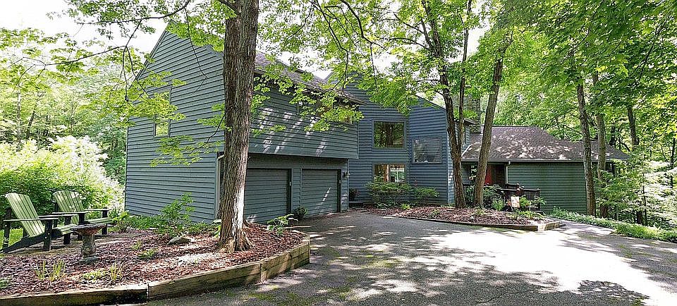 New in 2022: roof, skylights, sliding glass doors. Painted exterior with new colors (not pictured here). Exterior looks like a new home now! Beautiful, secluded contemporary home located in a serene wooded setting. Perfect for entertaining, and paradise for the nature lover. An open living area with hardwood floors, stone fireplace and wood-covered vaulted ceiling leads to several outside sitting areas on the multi-tiered deck. Inside, you'll find a roomy, light, and welcoming kitchen with island and tons of cabinet space. Enjoy quiet morning coffee or evening meals on the screened-in porch that provides an immersive experience within a forest of mature trees and a variety of wildlife. The magnificent indoor/outdoor flow of the main floor includes a bright and airy study complete with built-in bookcases and is open to the home's second level, which includes an expansive master bedroom and a Jack and Jill suite. ADDITIONAL DETAILS This impressive home holds much excitement for those who like to entertain, those who like to quietly enjoy nature, and everything in between. No need to drive to a park when you have deer trails to follow and incredible bird watching in your private woods. The neighborhood itself is a marvelous and safe place to take walks. This home grants a serene master retreat complete with private bath and an intimate porch off the bedroom that provides yet another view of the woods. Huge lower level includes approximately 1,440 square feet of finished space that could be made into a family/media room. New heat pump, furnace, and gutters (2013). New refrigerator and dishwasher (2016). Copy and paste this link into your browser to see a video of this home: https://www.youtube.com/watch?v=fKOFFWpvJ1E