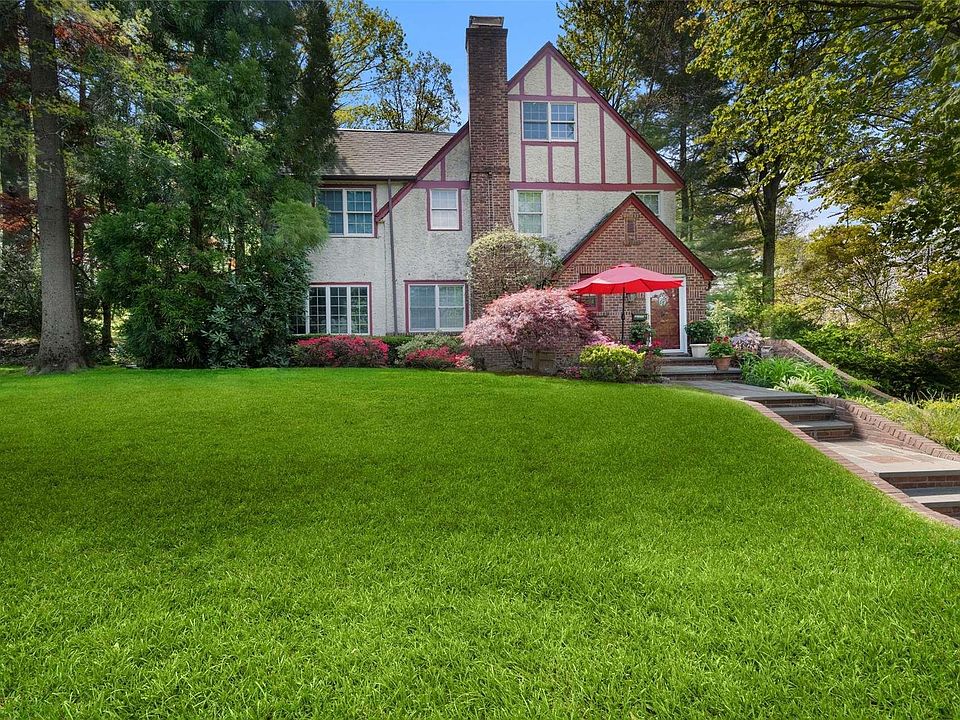 Beautiful Tudor Ideally located in the Village of Thomaston on a quiet Street with 1/2 Acre of magnificent, lush property. Just minutes from Town, LIRR. Shopping, Restaurants and Playgrounds, this special home has six oversized bedrooms, 3.55 Baths and full basement. With over 3,300 Sq Ft of living space, plus finished basement, this home boasts a huge living room with mantel fireplace, formal dining room, large eat-in-kitchen with Center Island, den, heated sunroom, guest bedroom/home office with full bath, powder room and first floor laundry room. The second floor has a primary bedroom with its own En-suite bathroom, three very large additional bedrooms and one additional full bathroom. The finished basement has a huge family room with a fireplace, bedroom, half bath and lots of storage. There are elegant moldings, hardwood floors, high ceilings and 2 zone central air. A long private driveway to the two-car attached garage completes this home. OPTION zone for schools. Residents enjoy the Great Neck Park District, Parkwood Pool and Sports Complex, Lazy River, Ice Skating, Olympic Pools, Waterfront Steppingstone Park and much more., Additional information: Appearance:Very Good,Interior Features:Guest Quarters,Separate Hotwater Heater:Yes