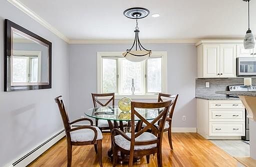 Final and best offers due 5pm Monday 3/19/18. Fantastic mint condition 4 bedroom Colonial available on a great neighborhood side street in Sharon! The first floor boasts gleaming wood floors throughout the dining room, living room, and family room. The family room has a fireplace for these lingering cold days. There is even a bonus great room with cathedral ceilings leading out onto your sprawling back deck overlooking a fantastic half acre yard. The kitchen has been tastefully updated and has ample storage. An updated half bath is also on the first level. The upstairs has 4 large bedrooms with lots of closet space and an updated full bathroom. Additional great space in the finished basement as well. All of this and there is a large 2 car garage with brand new doors! The heating system is newer and efficient and has three zones.New tankless water heater! There are even 2 newer central air units for this home! This home is just minutes from Lake Massapoag.