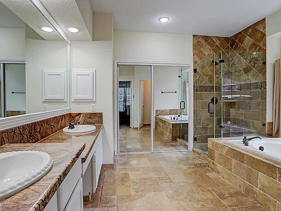 - RoomMasterBathroomFeatures: Double Vanity, Half Bath, Tub w/Shower, Primary Bath + Separate Shower, Vanity Area, Whirlpool/Jetted Tub, Hollywood Bath