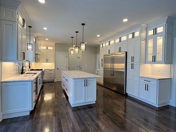 Come make this beautiful new construction colonial your new home. Greet guests in your grand 2 story foyer with a huge crystal chandelier. Entertain them either on your massive deck or private paver patio. Custom cabinetry, high end appliances, cabinet lighting, and quartz covering your 9' island make the kitchen truly glamorous. Cozy up around your gas fireplace in your large family room. The rest of the 1st floor boasts an open floor plan with gleaming hardwoods and designer trim package. An additional room and full bathroom give you options on the 1st floor. Upstairs you have 4 large bedrooms, all with custom closets. The huge master bedroom has his and her walk-in closets with an amazing spa like en suite bathroom. Finally, go hide in your tastefully finished light-filled walkout basement with 12' ceilings. An office and a full bath round out the space. You'll love every square inch of this large home, from the gourmet kitchen to the luxurious bathrooms...no detail was overlooked!