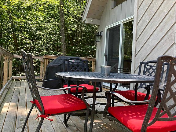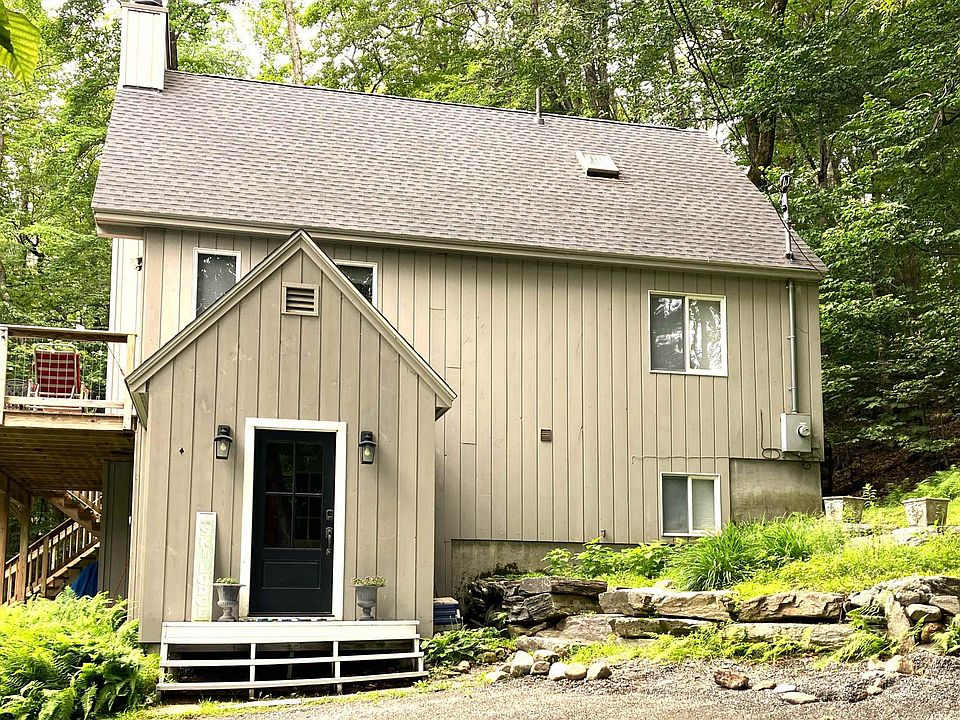 Section A - end of the road, low on the Hill, this Chalet style home has a lot of desirable features you have been looking for, including a mudroom entry with custom live edge bench, ski, coat and storage racks, three levels of living space, view rail deck, fire pit, family room, laundry, bunk room and full bath on ground level, 2 bedrooms, a full bath and cathedral ceiling open concept living, dining and kitchen with island, sliders to the deck, plus a loft for extra entertaining or guest quarters. Start living your dream! Plus, enjoy all the amenities that Chimney Hill offers in its 1,200-Acre All Season Resort Campus, including the exclusive members-only Club House, located at 2,000' in elevation on the Main Hill, with indoor and outdoor heated pools, hot tub, arcade room small child playroom, members-only lounge, fully-equipped kitchen for HOA members to use, community room, reading nook, outdoor grill, playground, basketball, tennis, and the extensive multi-use trail system for snowmobiling, hiking, biking, x-country skiing, seasonal pickleball and ice skating, fishing pond, lookout, Haystack Mt trail access, and more. Southern Vermont and the Deerfield Valley offer golf, boating, hiking, paddleboarding, world-class skiing and shredding, the Green Mt National Forest, music, festivals, breweries, distilleries, unique shopping, flea markets, fine dining, casual dining, and so much more!
