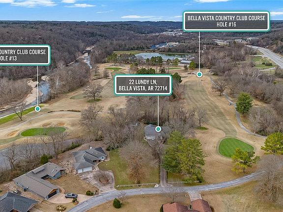 A golfers dream home... 22 Lundy is right next to the 15th green of the Bella Vista Country Club and has views of the 12th green and 13th fairway. Situated on a gorgeous 1.12 acre manicured lot, this property boast lots of shrubs and landscaping, an amazing outdoor space with wonderful views. Recently updated with new appliances and newer hvac and water heater. There is an abundance of natural light throughout the home, a large primary suite, an oversized garage and fire pit for relaxing while watching sunsets. Super easy access to I-49, just minutes from Wal-Mart in Jane Mo and very close to multiple trail systems.
