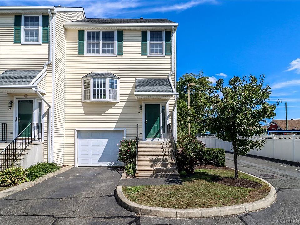 Welcome to The Enclave! Located in the heart of downtown Danbury, this move-in ready tri-level townhome offers the perfect blend of privacy and convenience. Take full advantage of the walkable proximity to all the amazing shops, restaurants downtown Danbury has to offer, as well as the Danbury Train Station, City Center Danbury, Rogers Park and multiple major commuter routes. Upon entering this tastefully updated end-unit townhome, you're greeted by a sun filled living room that boasts beaming hardwood floors, a large bay window, and cozy gas fireplace. The open floorplan flows seamlessly into the spacious eat-in kitchen complete with SS appliances, granite counters, hardwood floors & pantry. The dining area is just off the kitchen and has plenty of space to fit the full family, plus it has sliders that lead out to a private back deck. Upstairs, you'll find a beautifully updated full bathroom and two expansive, well-appointed bedrooms, both with brand new carpeting. The primary bedroom boasts vaulted ceilings, and a large walk-in closet with custom organizers. The finished lower level offers a versatile bonus space that can work well as a home office, play/rec room, home gym, or even a third bedroom. Additional highlights include central air, high-efficient gas heating system and numerous updates throughout. This home is prime for a multitude of buyers, whether you're looking to downsize, or searching for your first home or just looking for a commuter-friendly location!