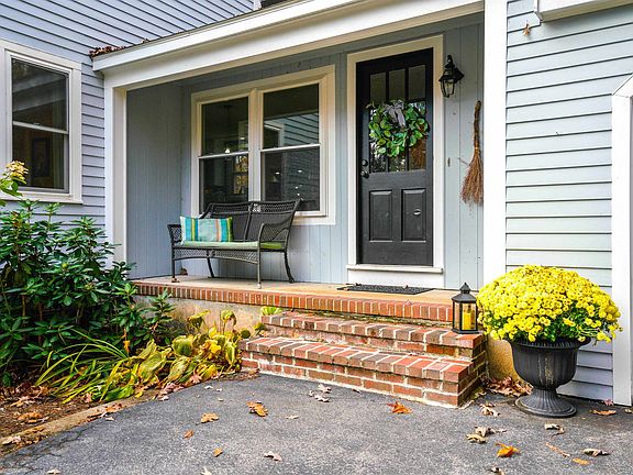 This lovely gambrel is located within WALKING DISTANCE OF AMHERST VILLAGE sited on a partially wooded 1.5 acres complete with a stone wall! A large 3-SEASON PORCH sets the stage for lazy summer evenings as it flows out to the stone patio and private yard. Inside, the tastefully updated eat-in kitchen boasts WHITE SHAKER CABINETRY, granite counters and flexible island space with newer appliances as well as a handy FIRST FLOOR LAUNDRY/mud room. A welcoming formal dining room is light-filled and finished with stately WAINSCOTING and chandelier. Natural oak floors cover the front-to-back living room featuring a cozy antiqued brick fireplace with built-in book cases and cupboards while a cheery FIRST FLOOR OFFICE has a bright bump-out window and functional built-ins for optimal efficiency and comfort. Upstairs, you'll find an oversized PRIMARY BEDROOM SUITE featuring an updated bathroom, built-in closets and peaceful woodland views. 2 other comfortably sized bedrooms are filled with light and served by a cheerfully updated main bathroom. Don't miss the large FINISHED BASEMENT with room for ping pong, gym, office or a movie theatre, complete with wood fireplace...the perfect hang-out space! Updates in the past year include NEW ROOF, full exterior painting, new well pump and a new garage door, while the septic system and all other windows including sunporch have been replaced in recent past. Enjoy TOP-RATED SCHOOLS and easy access to Rt 101. $3000 CREDIT TOWARD FLOOR REFINISHING!