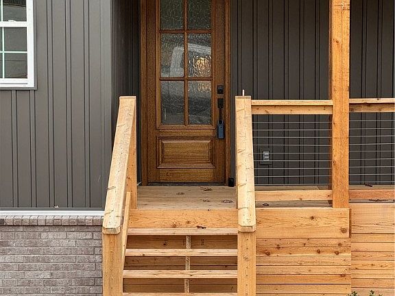 Inside, enjoy luxury vinyl plank flooring, 9-foot ceilings on both levels, soft-close cabinetry, granite countertops, a 3’ x 5’ island, stainless appliances, and a built-in trash drawer. The carefully selected, designer-inspired “color drenched” paint palette blends warmth and modern style beautifully. A perfect blend of modern style, energy efficiency, and Bella Vista’s extraordinary trail lifestyle.