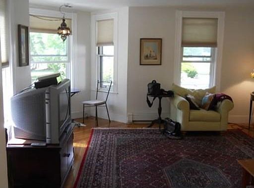 Bright 5 room 1st floor apt in two family. Hardwood floors Front porch Needham heights 5 min walk to T Off street parking Private basement Washer/dryer