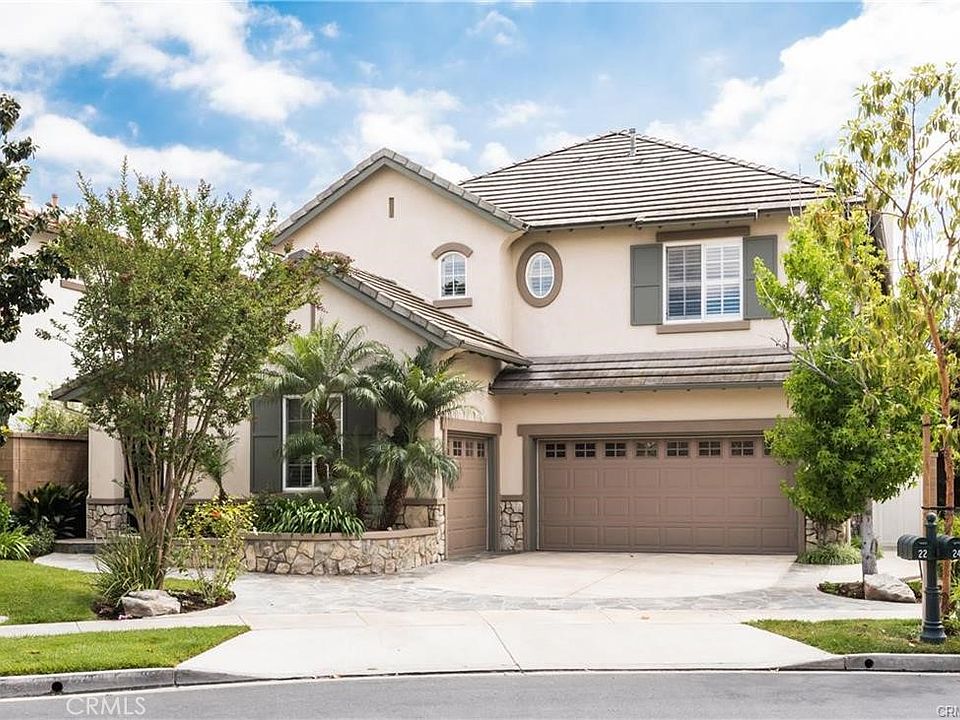 Desirable Brentwood floor plan with great curb appeal in the guard-gated community of North Park. The private entrance with a double door invites you to a formal living and separate dining room. This home features a dramatic foyer with vaulted ceilings, a large family room with a fireplace, a remodeled gourmet kitchen with granite counters, upgraded cabinets, stainless steel appliances an oversized island, and a built-in wine cooler & rack. The bedroom downstairs has a full bath used as a den/office, three secondary bedrooms upstairs with two full baths, a master suite with a cozy retreat, a master bath, and large walk-in closet, and a bonus room perfect for an entertainment room or home office. Tastefully upgraded with kitchen, marble flooring, engineered hardwood floors, custom paint, and more. Private big back yard appointed with custom built-in BBQ and island. The association offers pools, parks, tennis courts, and more. Minutes from schools, shopping, entertainment, and freeways.