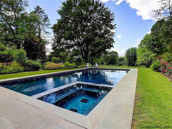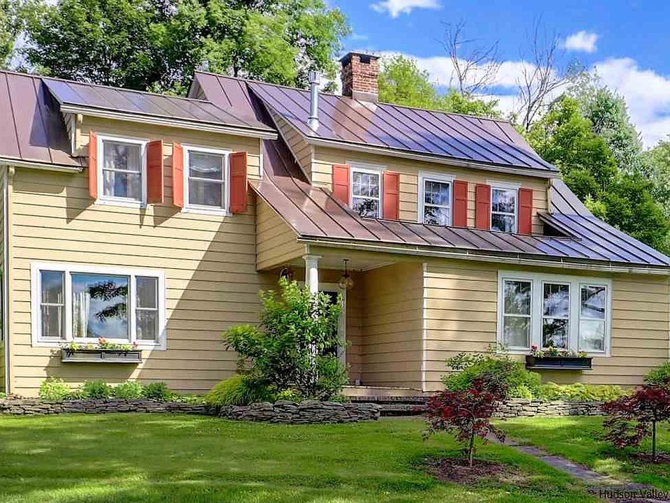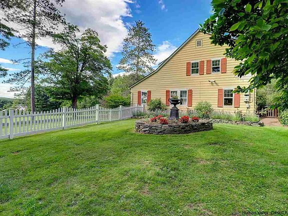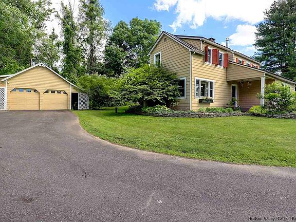 Surrounded by 6+ acres of rolling meadow and lush landscaping, this enchanting Stone Ridge two-story clapboard house is a classic of arts-and-crafts charm. A short walk from the beloved Davenport Farm Stand, and a quick drive to the village shops and restaurants, this property combines the convenience of being in town with the seclusion of country living. The house has many original details including wood moldings, solid wood doors with antique hardware, working fireplace, hardwood floors throughout, and built ins such as a dining room china hutch and bookshelves. The first floor has a wonderful circular flow. Upstairs you will find a spacious master bedroom with en-suite bathroom, ample closets with cedar lining and a gas fireplace for added ambiance. There are three other generous bedrooms served by another full bathroom. Around the house great attention has been paid to immaculately designed landscaping. The summer blooms are spectacular. A secluded fenced-in side yard and deck are perfect for evening relaxation and entertaining. Across the driveway and past the garage and a charming cabana/studio you will be delighted by the ultra-private salt-water swimming pool with that also contains a hot tub. Kids and adults alike will adore this summer oasis. There have been many recent upgrades to this house. The standing seam metal roof will last a lifetime. A newly installed furnace and oil tank will provide years of energy efficient heating. A brand new well-water filtration system is in place. The house is equipped with solar panels and an electric car charging port in the garage. Classic elegance meets the modern world.