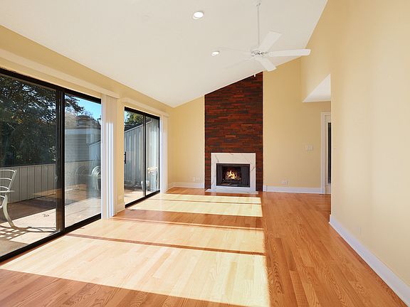 Affordable and unique resort style living on Chain O' Lakes. This absolutely stunning, renovated 2-bedroom condo has new hardwood floors throughout and a brand new kitchen with 42" white shaker cabinets, quartz counter tops, recessed lights, cathedral ceiling and stainless steel appliances. Impressive living room has soaring cathedral ceiling and beautiful fireplace. Updated shared master bathroom with new vanity, quartz top, ceramic floor and tub surround. Large master bedroom with ample closets. 2nd bedroom has stunning French doors. Freshly painted. New white trim and 6 panel doors throughout. New light fixtures, outlets and switches. Light and bright unit with three large sliding glass doors which lead to a spacious deck area perfect for entertaining. Large wooded back yard area is yours to enjoy as well. 1 car garage included. Community clubhouse, beach and pool. Very convenient location close to the Metra station, downtown Fox Lake and the Chain O' Lakes lifestyle. Estate sale. Sold as-is condition with 13 month home warranty (HWA) included.