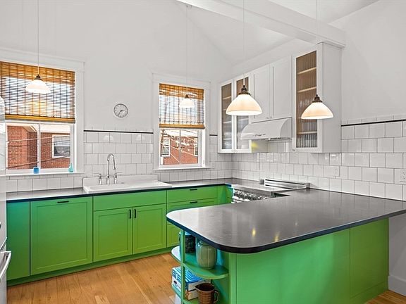 FURNISHED. Available December 1st. New 2025 renovation upper two floor duplex with direct entrance features approximately 1350 square feet, 3 bedrooms, 2.5 baths, private deck, and PARKING. Flexible lease terms, shorter or longer, please inquire. Entry/first level features primary bedroom suite with private bathroom, and two good sized additional bedrooms with shared bathroom. Upper level features open concept living room and dining room with vaulted ceilings, ceiling fan, and gas fireplace, all open to large private deck with water and electric. The fun, retro kitchen is fully applianced, has tile backsplash and additional seating at the breakfast bar. There is an additional half bath on this level. Fully furnished, all utilities are included, lessee pays for cable tv and internet. Hardwood floors throughout, central air, and in unit washer/dryer complete this wonderful rental offering. 1st MO/1 MO Security due at lease signing. Very close to South Boston's beaches/Carson Beach.