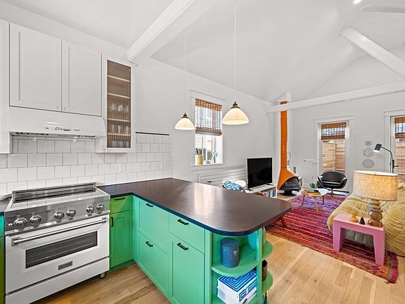Gas fireplaceCentral airPrivate deckRetro kitchenBreakfast barHardwood floorsDirect entrance
