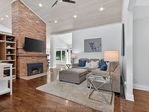 Rarely Offered Detached Bungalow Situated On A Spacious And Private 163Ft X 189Ft Lot (0.72 Acres). Approximately 3000 Sqft Of Finished Living Space. This Gorgeous Home Features Wood Cathedral Ceilings, Floor To Ceiling Brick Fireplace, Elegant Kitchen With Granite Counter Tops, Stainless Steel Appliances, Updated Primary Ensuite, Pot Lights, Newly Finished Back Deck, Hot Tub, Renovated Basement With Spray Foam Insulation & Wet Bar & More. Mins To Hwy 400/Hwy 27.
