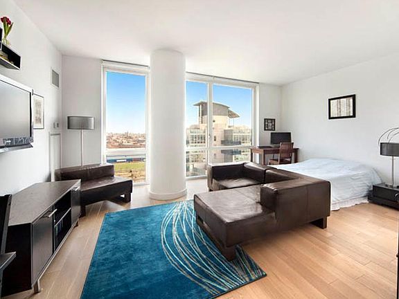 Gorgeous oversized alcove studio in one of Williamsburg's pre-eminent white glove condominiums- The Edge. This well appointed home includes open river & Manhattan skyline views, high ceilings, extra large windows, abundant closet space, in unit washer/dryer, and top of the line appliances. The unit can fit a king sized bed plus ample furniture. The renowned Edge Condominium is a white glove luxury building offering the finest amenities including a 24-hour doorman & concierge, health club with Spa, steam room and sauna, children's playroom, cold storage, swimming pool, basketball court, lounge, cinema room, plus much more! Steps from the Ferry to the city and minutes from the L Train.