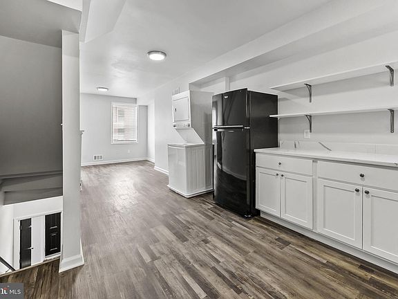 Recently renovated two level apartment on 2nd & 3rd floor. All new historically correct windows , 3" blinds, brand newer white kitchen w/Shaker cabinets & Quartz counter tops w/ custom shelving. Gas appliances, newer stacked washer & dryer in kitchen, all new luxury vinyl tile throughout, fresh paint throughout. Sparkling white tubs with shower, glass tile accent with subway tile. This home is super clean with ideal floor plan. Main level offers super bright living/dining room combo, kitchen new hall bath and rear bedroom. Top floor has two bedrooms on each end and centered hall bath under hall with cathedral ceilings. Wide staircase for easy move-in. Water bill divided equally by the number of occupants residing in the building. $20,000 minimum renters insurance required. Steps from newly renovated Hollins Market, Rooted Rotisserie Restaurant, Zella's Pizzeria and Jumbo Fresh Supermarket in the Mt Clare Junction Shipping Center.