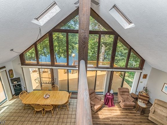 Welcome to your peaceful escape on the Delaware River! This beautifully maintained 3 bedroom, 2 bath A-Frame home offers stunning water views, serene surroundings and direct river access. Perfect for year-round living or a weekend getaway. Step inside to a spacious light filled family room with soaring ceilings and panoramic views of the river with all Anderson windows. The large eat-in kitchen is perfect for gathering, while the first floor laundry room adds convenience. A versatile second floor loft overlooks the main living space and can easily serve as a fourth bedroom, home office or creative space. Enjoy 100 feet of private river frontage from the expansive deck-ideal for outdoor dining, entertaining or simply soaking in the natural beauty. Follow the private steps down to the river where your own dock awaits for fishing, kayaking or launching your boat. Tucked away in scenic Columbia, NJ this home blends rustic charm with modern comforts. Home is NOT in a mandated flood zone.