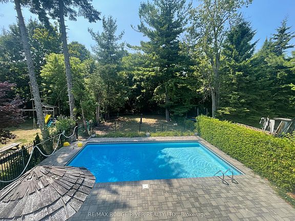 This treasured home is nestled on the edge of Curran Hall Ravine with total privacy in the rear. It's a popular layout in Curran Hall, the 3-level backsplit, but this one boasts a rare and impressive lower-level addition! Lovingly maintained by the same owner for almost 60 years, it features a generous living room with vintage niche shelving. Large patio doors lead to a huge elevated terrace (over 400 sq ft) overlooking the pool and, beyond that, the ravine. Efficient kitchen with granite counters and ample cabinets. There's a convenient side door from the kitchen to the upper terrace as well as the driveway and carport. Bathroom updated including a Mirolin tub/shower surround. The main and upper level flooring is mostly broadloom; however, beneath the carpet is the original hardwood (oak) which has been beautifully refinished in two of the bedrooms. The lower level is amazing, with a walk-out family room, floor to ceiling gas fireplace, built in shelving and a wet bar. Consider the future possibilities for a spacious and accessible family suite in this exceptional space. In the rear yard is a full-size inground pool, 32' by 16' with solar heating, spacious landscape-stone patio and attractive wrought-iron fencing. The front boasts a carport plus double-width drive and there's also a convenient and attractive breezeway for comfortable access to the home. Huge crawl space for storage. Other features of the house include: central air (2024); 200-amp service (2021); smooth ceilings; Centravac; sauna with shower (in "as-is" condition); and gutter guards (2018). Two garden sheds. Furnace installed in 2016 and the water heater is owned. Great location, minutes to excellent amenities including Morningside Park, Scarborough Golf Club, Cedar Ridge Creative Centre and the U of T Scarborough campus. Transportation opportunities include the TTC /Lawrence Ave, Guildwood GO station and Hwy 401 interchanges at Markham Rd and at Neilson Rd. Must be seen!