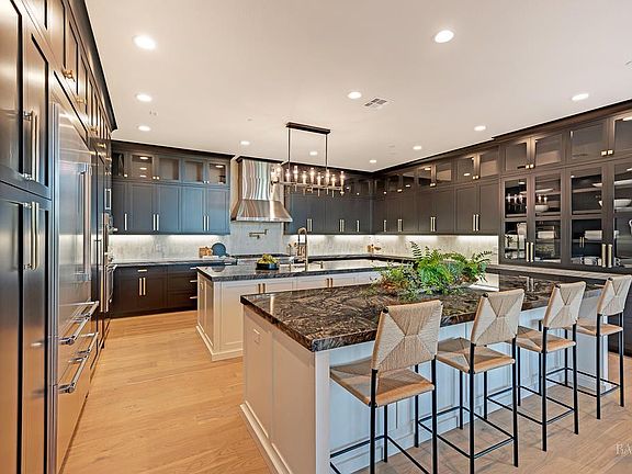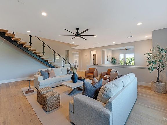 Discover a beautifully designed home in the heart of Petaluma, just 1.5 miles from downtown. This newly constructed tri-level residence blends modern conveniences with thoughtful design, offering stunning Eastern views from every angle. Upon entry, the light-filled atrium and floating staircase set the tone. The lower level features a home gym, locker room, 12-seat theater/game room, and a wine room with a dumbwaiter for easy access to the scullery kitchen. A mudroom off the 5-car garage includes a convenient pet wash station. The main level boasts vaulted ceilings, a spacious office, two bedrooms, and a chef-inspired kitchen with two large islands, Thermador appliances, and two-tone cabinetry. A secondary scullery kitchen caters to entertaining needs, and the dining area leads to an outdoor deck that connects to the surrounding views. Upstairs, find two more bedrooms and a luxurious Owner's Passage Suite, with panoramic windows in the primary shower offering breathtaking views. 22 Oak Knoll is a one-of-a-kind home, blending modern luxury with practicality in Petaluma. www.22oakknoll.com