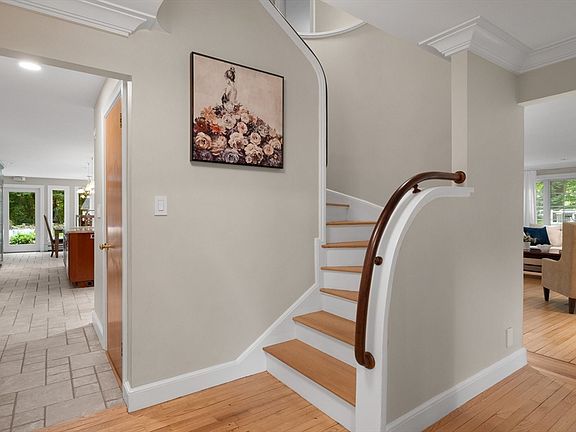 This exceptional, custom-built Westside colonial sits on a professionally landscaped lot, a short distance from the highly regarded Joshua Eaton Elementary School. Designed for effortless entertaining, the stunning mahogany kitchen features quartzite countertops, a spacious center island, SS appliances, and flows into an informal dining area and a generous family room. French doors open to a large patio, overlooking a meticulously maintained backyard with a lush lawn, fire pit, & custom shed. The charming living room with FP connects to a striking dining area highlighted by a full-length glass wall flooding the space with natural light. An office w/ FP completes this level. Upstairs, you'll discover four well-appointed bedrooms, including a luxurious primary ensuite and an expansive private rooftop deck complete with a hot tub. A heated sun porch used as an office connects to one of the bedrooms. The finished LL is ideal for playroom, gym, 2nd family room or home office.