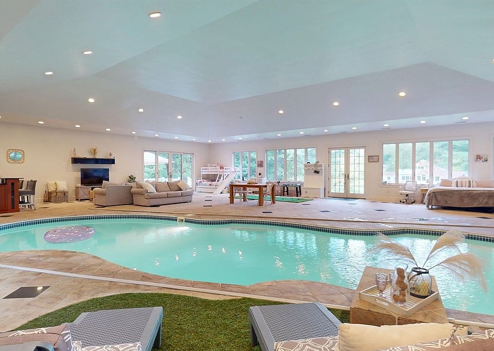 Welcome to a rare offering in the heart of Lincoln — a beautifully expanded and meticulously maintained residence that blends timeless New England charm with modern luxury. Nestled on over 2.5 acres of private, wooded land, this Contemporary home offers a serene retreat just minutes from conservation trails, commuter routes, and the vibrant cultural life of nearby Cambridge and Downtown Concord. Custom cabinetry, high-end appliances, granite countertops, and a large center island perfect for entertaining. Formal living and dining rooms, a cozy family room with gas fireplace, and a sun-drenched solarium. 4 generously sized bedrooms and 3 full bathrooms, including a luxurious primary suite with spa-like bath, renovated shower and customized walk-in closet. One of a kind detached pool house with full kitchen, renovated bath, entertainment area, and private deck all built in 2011. This is a truly a unique property that offers two homes on one parcel.