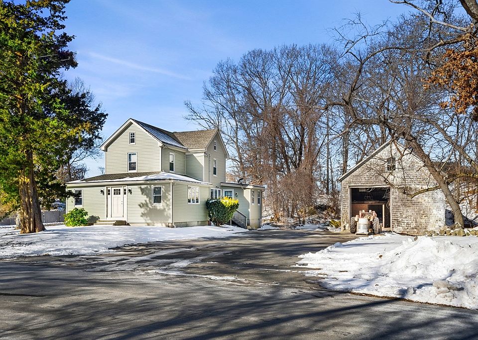 Along a rural road with easy access to Route 1A and beyond find a serene open setting with home and its mate, a 25’ x 25’ lofted barn. From its driveway, the home welcomes you into an accommodating mudroom directing you to a spacious eat-in kitchen. To the front is an expansive living room that greets a room to its side that works well as a home office. Off the kitchen find a dining room with egress to a spacious three-season porch for quiet summer dining and relaxation. Above rests three bedrooms and a dedicated walk-up attic that is ample for one’s storage needs. This home features first-floor laundry hookups, some wood/hardwood floors, pellet stove and a potential for a first-floor living opportunity. The picturesque lot conforms to town’s Residential-Agricultural (R-AG) zoning requirements and for potential home expansion. The home’s exterior has been well maintained. The interior seeks the creativity of a new owner. The lofted-barn may act as a garage with minimal effort.