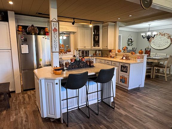 Step outside the family room sliding glass doors to enjoy a fenced-in yard with a deck and cabana, perfect for entertaining. A paved driveway plus a second drive leading to a garage/workshop offer flexibility, while an additional storage shed provides even more options. Located just minutes from the local park, schools, and area amenities, this home combines updates, space, and charm—all in one package. Don't miss this opportunity to make this your next home. Just bring your belongings and move right in!
