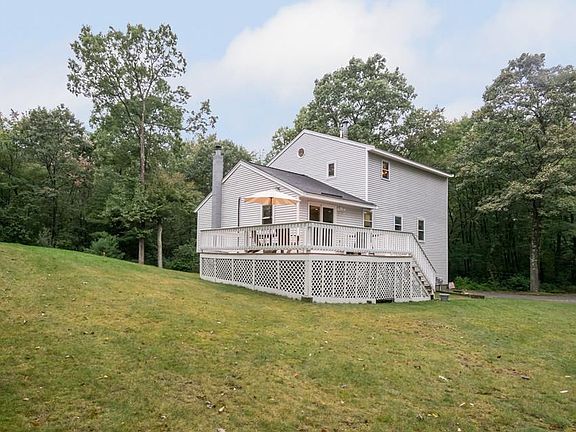 A PRIVATE & SECLUDED lot at the end of a long driveway located off a lovely cul-de-sac mins to Rt 93. Original owners' CUSTOM CONTEMPORAY split with stunning 2nd floor addition. Nestled in a very private setting with tremendous parking for RV, boat or lots of "toys" and cars. Immaculate & sunny open floor plan highlights the mirror image Bella wood flooring. Cathedral livrm open to the updated kitchen w/coffered ceiling, island, ss appl and din area w/slider to deck. Lg bedroom with access to updated full bath and 2 additional bdrms. Cathedral staircase to 2nd fl beckons you to enter the HUGE MBR SUITE. Cathedral ceilings, electronic skylites, sitting area, great closet space and a stunning master bath w/dbl sinks, oversized shower and sep toilet area. Also an office/nursery on this fl. The lower levels offers a f-b famrm w/wood stv. This home has the option for 2 masters w/bathroom, new C/A & 2c garage. Live in your own private retreat.