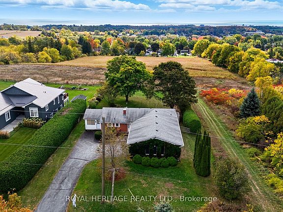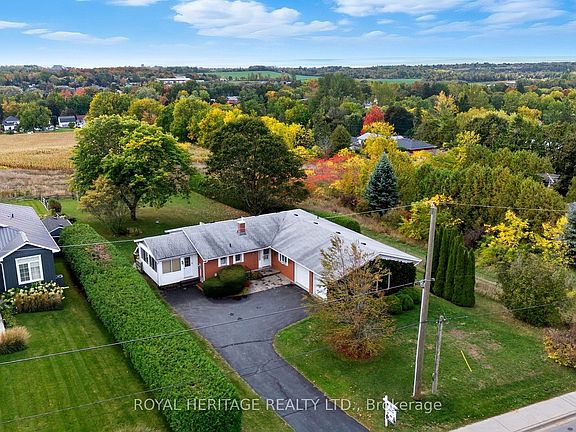 Set on a rare half-acre lot in town, this exceptional bungalow offers total privacy and sweeping south-facing views over Lake Ontario and the village below. The elevated position captures breathtaking sunrises and sunsets, with a backyard thats perfect for entertaining, gardening, or simply soaking in the natural beauty. The spacious double garage and driveway provide parking for up to five vehicles.Step inside to find a bright, open main floor flooded with natural light and hardwood floors throughout. Designed to maximize the views, every principal room feels connected to the outdoors. The primary bedroom enjoys serene lake views and features a semi-ensuite with a relaxing soaker tub. A second 3-piece bathroom, main floor laundry, and a charming 3-season sunroom with walk-out to the deck add everyday comfort and convenience.The lower level is partly finished with a cozy rec room featuring a gas fireplace and walk-out to the backyard. A second walk-out from the unfinished area, combined with an existing 2-piece bath, workshop, cold room, and ample storage, makes this space ideal for a future in-law suite or multi-generational living.Located on one of Colbornes most sought-after streets, youre just 2 minutes to the 401 for an easy commute. Enjoy the charm of local shops, cafés, and schools, plus quick access to outdoor recreation including Little Lake public beach, Wicklow Beach, Cobourg Beach, and Presquile Provincial Park.