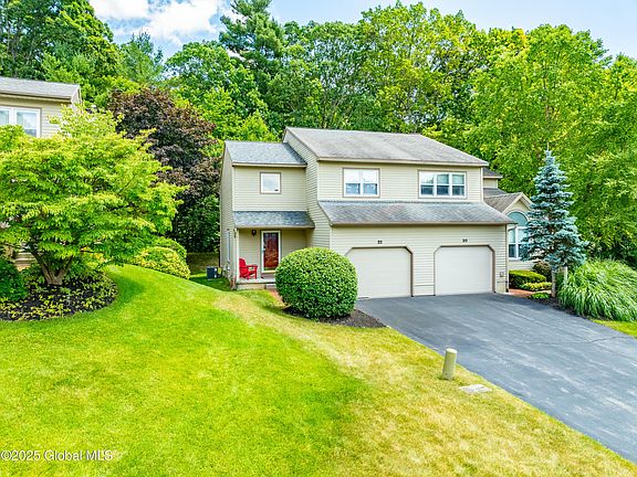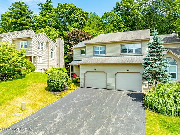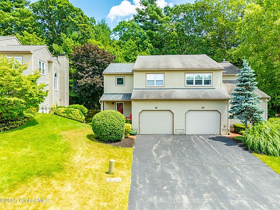 Discover turnkey luxury just minutes from Saratoga Springs and Saratoga Lake in this elegantly updated townhouse at Saratoga Ridge. Featuring a chef's granite eat-in kitchen, dramatic vaulted ceilings, and two spacious bedrooms with beautifully remodeled en-suite baths, this home offers effortless style and comfort. A flexible loft area, first-floor laundry and half bath, and a fully finished lower level with a full bath provides added living space and convenience. Enjoy peaceful, wooded views from your private Trex deck. With lawn care, snow removal, and access to a heated pool, tennis/ pickleball courts included in the HOA, this is refined, maintenance-free living at its best. Move right in and enjoy living in this prime location, close to recreation, downtown Saratoga, and SPAC.