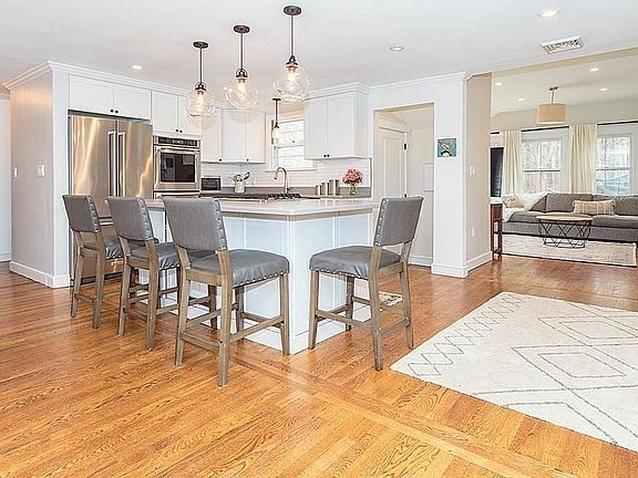- Features: Flooring - Hardwood, Dining Area, Countertops - Stone/Granite/Solid, Kitchen Island, Breakfast Bar / Nook, Cabinets - Upgraded, Open Floorplan, Recessed Lighting, Remodeled, Stainless Steel Appliances, Lighting - Pendant