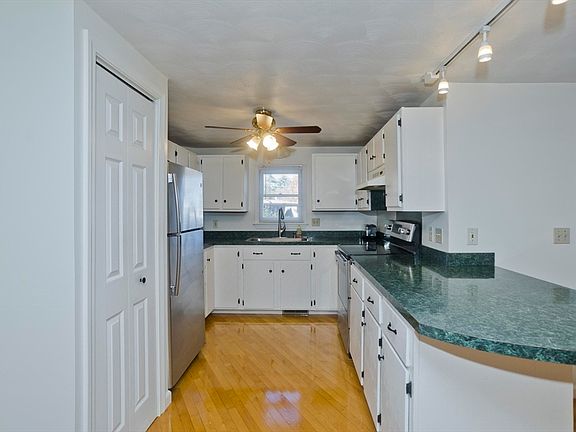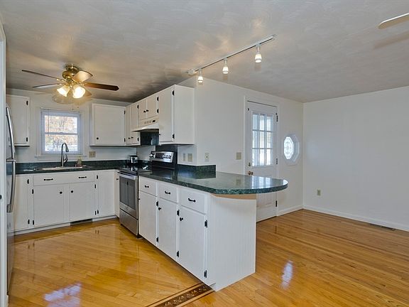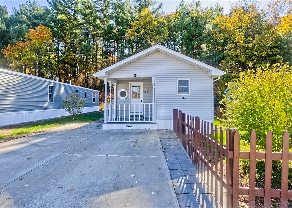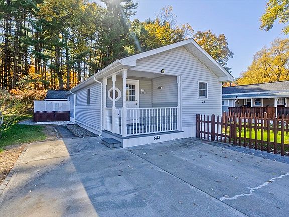 Welcome to Quaboag Valley Co-op in Palmer! This charming and well-cared-for 1970 Richardson mobile home feels more like a cozy ranch, thanks to its 9’x42’ addition that expands the living space to approximately 878 sq. ft. Inside, you’ll find 2 comfortable bedrooms and a full bath. The bright LR/DR features beautiful hardwood floors with decorative inlay and opens to a sunny 8’x9’ deck—perfect for relaxing outdoors. The galley-style kitchen offers stainless steel appliances and a generous peninsula for casual dining or extra prep space. A separate utility room adds convenience with laundry hookups, a newer hot water heater, and plenty of storage. Heating is provided by a Miller oil furnace with forced hot air, and window A/C units will help keep things cool in the warmer months. Outside, there are three storage sheds (one equipped with electricity), and a newly poured concrete driveway with space for two vehicles