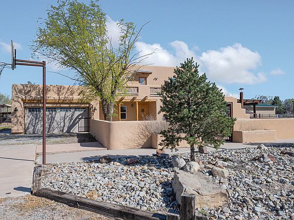 Welcome home to this fully custom, horse property on a quiet cul-de-sac. Country living with city conveniences nearby. Spacious floor plan includes solid wood cabinetry, stainless steel appliances, granite countertops throughout and cathedral ceilings in great room. Home boasts wood vigas, nichos, custom built-ins, hardwood floors in bedrooms, custom wrought iron , 2 kiva fireplaces and bulter's pantry in laundry room. The property is equipped for horses with piped fencing with horse panel, animal pens and custom chicken coop. In addition to a 2 car garage, property includes a large, fully insulated workshop for storage or hobbies. Property is fully fenced with automatic gate for privacy and security. The outdoor area provides ample space for hosting BBQ's or enjoying the lovely NM weathe