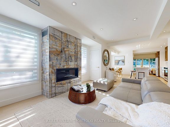 A Rare Blend of Modern Elegance and Comfort. Welcome to this exquisitely renovated 4+2 bedroom, 3+1 bathroom detached residence, featuring a legal 2-bedroom basement suite, that perfectly balances design sophistication with functional family living. Every inch of this home has been professionally reimagined with a consistent design language - clean architectural lines, a warm gold-and-white palette, rich wood accents, and premium hardware throughout. The open-concept main floor showcases a luxurious living room with a custom fireplace, a dining area for eight, a striking modern kitchen that flows seamlessly into an Architectural Digest-inspired powder room. It's an entertainer's dream - a perfect space for family gatherings or elegant soirées. The chic family room overlooks a serene, private backyard through the large sliding glass doors and a spacious deck with glass railings - extending your living space and connection to nature. Bathed in natural light from its corner-lot position, this home radiates warmth and tranquillity. All major systems are brand new - flooring, kitchens, bathrooms, plumbing, electrical, and HVAC - complemented by premium Muti Kitchen & Bath fixtures and lifetime-warranty on windows and doors. The self-contained 2-bedroom suite features a granite kitchen, a private entrance and radiant heating. It offers flexibility as an income property, guest suite, or in-law apartment. Built to City of Toronto code, it features Safe & Sound insulation, Smoke/CO/Strobe alarms, and a 4' x 4' window that fills the space with natural light. Enjoy 4 parking spaces, including a double garage with its own breaker panel and EV charging capability, and an exhaust system ideal for projects. Located next to the Dentonia Park Golf Course and directly across from Taylor Creek Park, which offers 182 acres of trails and greenery at your doorstep. Minutes to schools, The Danforth, The Beaches, and only a 5-minute walk to the subway - this is Toronto living at its finest