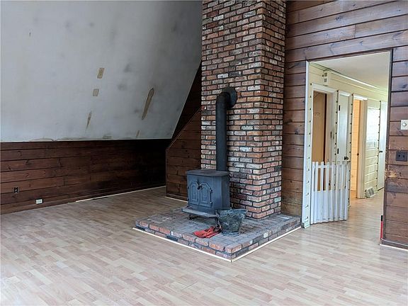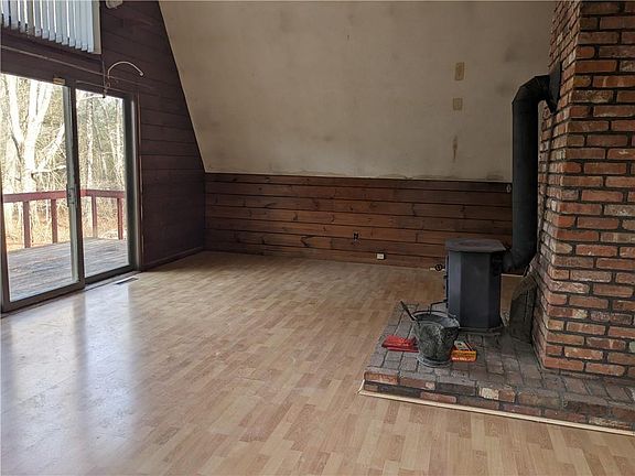 This well built A frame home offers central air, forced hot air, plastered walls, large deck, walk out lower level, 100 amp breakers, two wood burning stoves, 3 bedroom septic system, 1 car garage on 12.67 acres of land on a low traveled dirt road on the Foster/Coventry line. The home sits off the road for lots of privacy. The home needs some updates, but can be easily restored.