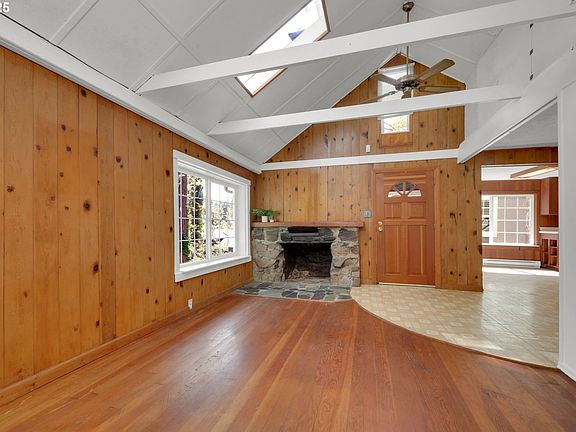 SELLERS ARE MOTIVATED, BRING OFFERS! Surrounded by trees, this cozy cabin-style home offers a quiet retreat while still being close to everything South Eugene has to offer. Inside, wood-paneled walls, a stone fireplace, and vaulted ceilings with skylights bring warmth and character. The kitchen is bright and functional, with a utility room nearby for extra storage or pantry space. The home includes one bedroom and one bathroom, plus a loft that can serve as a second bedroom, office, or creative space. A detached studio with electricity sits just outside, providing even more flexibility, whether for work or hobbies. A tool shed on the upper part of the property adds extra storage.Out back, mature trees create a private, green setting, while the front porch is the perfect spot to take in the view of the butte. A covered carport provides off-street parking. Located in the desirable South Eugene area just off Crest Drive, this home offers a tucked-away feel while being minutes from shopping, parks, restaurants, and Wayne Morse Family Farm. A great investment opportunity. Ready for all your updates to make it yours!