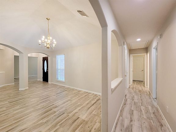 Move in ready! New Carpet!! Includes Refrigerator, washer and dryer! Stunning single story home with neutral tile throughout main living areas, high ceilings in the oversized living room, and a beautiful formal dining area overlooking the living room. The kitchen/breakfast combo features granite countertops and a breakfast bar. The primary bedroom boasts a sitting area and walk-in closet. The backyard includes a covered porch for relaxing evenings. Move in Special for October 1st. Don't miss the chance to make this your new home!