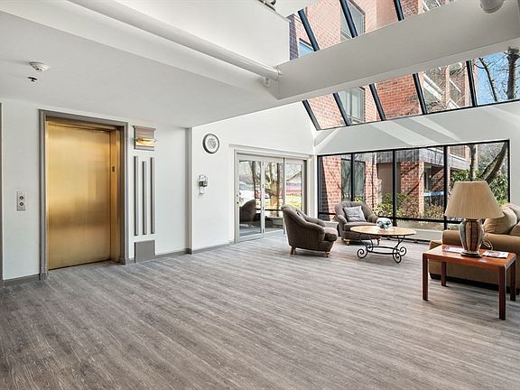 THE ANDOVER presents contemporary style in a distinguished elevator building with an impressive atrium entrance. This freshly updated corner unit showcases new flooring throughout the open-concept living area, where glass sliders lead to a private deck. Recently refreshed with designer paint and plush new carpeting in both bedrooms, this home maximizes space with a wall of closets in the primary bedroom. The efficient kitchen layout and in-unit laundry add modern convenience, while the updated HVAC system (2019) ensures year-round comfort. Located in coveted downtown Andover, this lock-and-leave lifestyle offers the ultimate in ease. Professional management handles all exterior maintenance, from expert landscaping to winter snow removal. Additional storage in the basement, deeded 1 car garage parking spot with 1 additional deeded on site parking spot and fitness center make this a great choice for empty nesters or first time home buyers.
