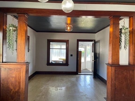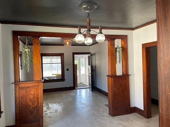 Great convenient location near downtown. Enclosed front porch, stunning woodwork on main level with gorgeous hardwood flooring. Two main floor bedrooms with full bath. Cozy kitchen with modern flair updates. Main floor laundry and office area off back side of home to a huge fenced in backyard. Includes a newer outbuilding for lawn tools and toy storage. Upper level has a large bedroom and extra space for toy room or craft area. See it today!