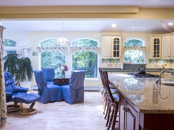 Northside expanded Colonial, quiet cul-de-sac, family neighborhood with privacy surrounded by gardens. At the heart of this home is a sun-filled kitchen extraordinaire featuring 14' granite island, baking center, 2 sinks, 2 dishwashers, 2 ovens, Wood Mode cherry & maple cabinetry, perfect for entertaining. Sunny eating area flows into sunroom which features bright oversized windows accented by stained glass. Sliding door opens to two-tiered deck overlooking yard. Traffic flows easily w open floor plan, fireplace living room, spacious dining room & den. Master suite w fireplace. Lower level features 25' x 25' family room, wood burning stove, half bath & hot tub/exercise room w full glass wall opening to expansive patio. Craftsman's dream workshop wired for power tools and room for big projects w cabinets & full exterior door. Storage galore w custom closets, heated triple closet in garage. Central vac system. Major addition, roof & Buderus furnace w unlimited hot water. MUST SEE